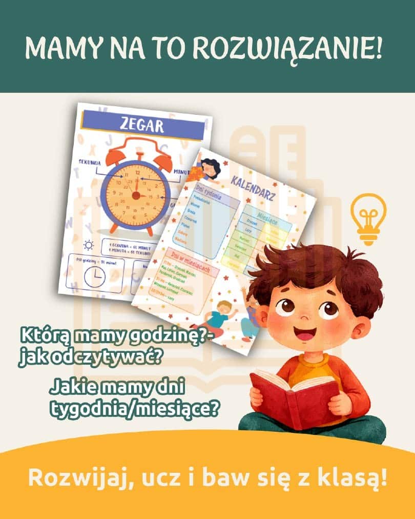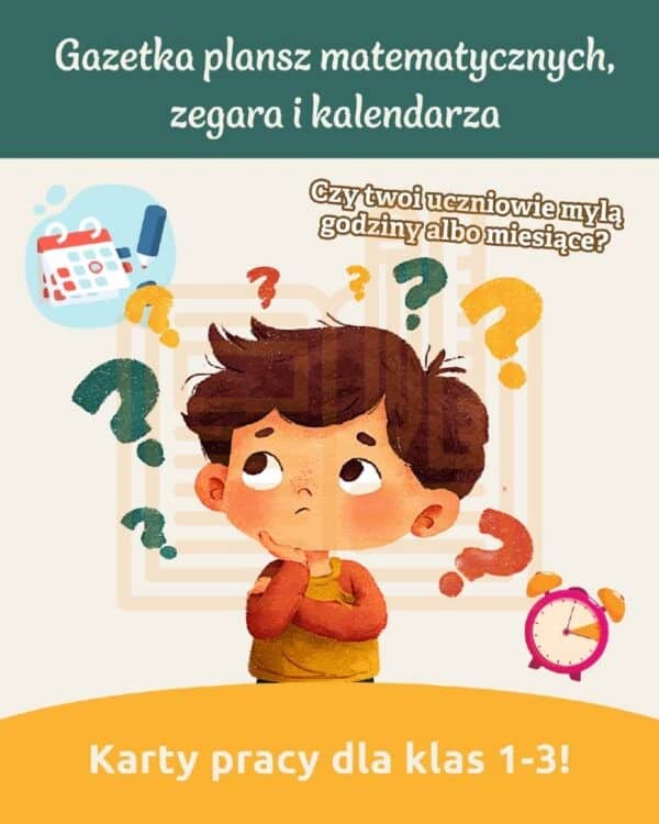 Gazetka: Plansze matematyczne + zegar + kalendarz to praktyczny i estetyczny zestaw materiałów do druku, który w prosty i angażujący sposób wspiera naukę matematyki oraz orientacji w czasie w klasach 1–3. To idealne rozwiązanie dla nauczycieli edukacji wczesnoszkolnej, którzy chcą stworzyć czytelną i atrakcyjną przestrzeń edukacyjną w swojej klasie.