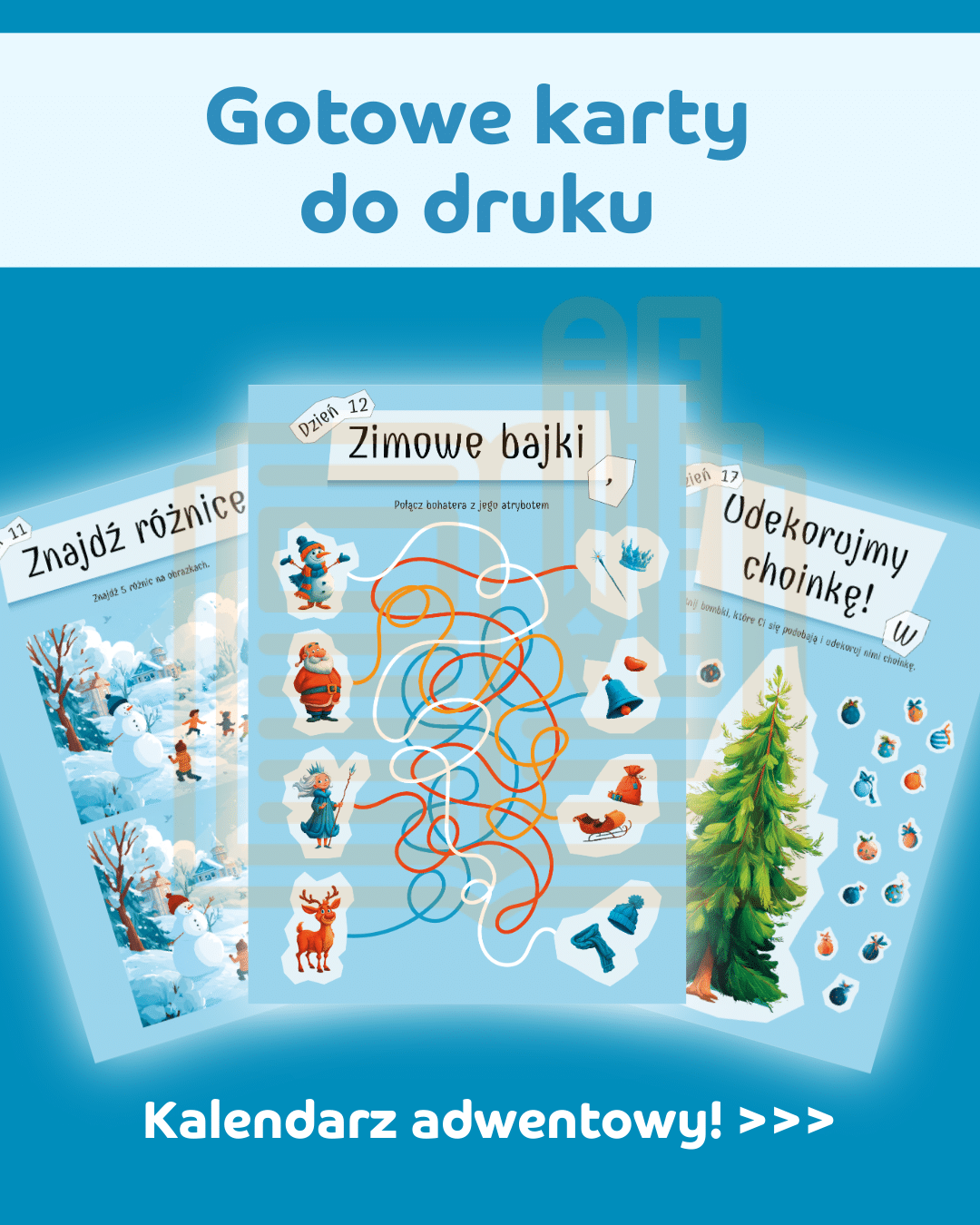 Kalendarz Adwentowy z zadaniami to wyjątkowy, zimowy zestaw edukacyjny dla klas 1–3, który każdego dnia wprowadza uczniów w radosną, pełną odkryć atmosferę zimy. To materiały do druku, które łączą naukę przez zabawę, rozwijają spostrzegawczość, kreatywność, logiczne myślenie i kompetencje językowe. Nauczyciele otrzymują gotowe do druku karty pracy, a uczniowie – codzienną dawkę emocji i odkrywania.