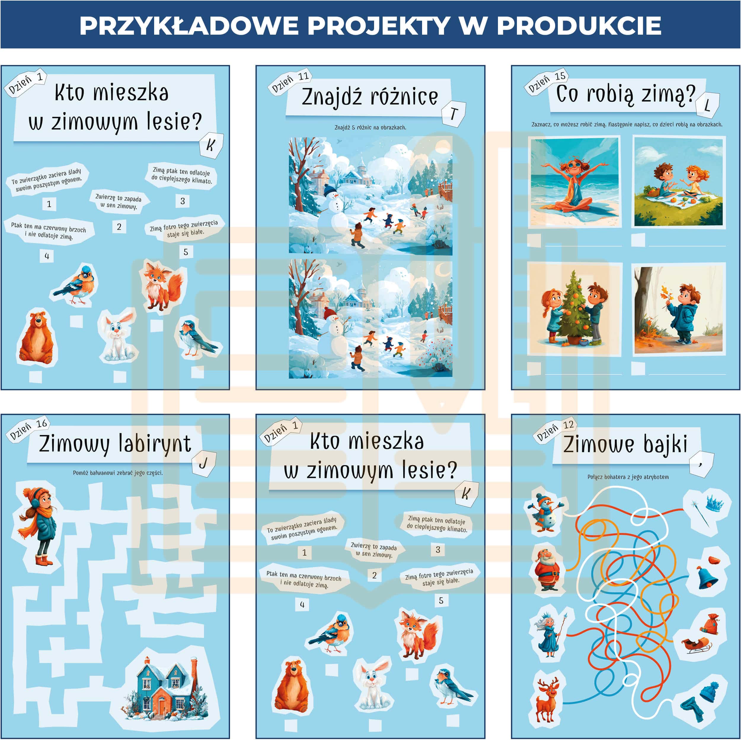 jako zestaw zimowych kart pracy do wykorzystania w dowolnej kolejności,