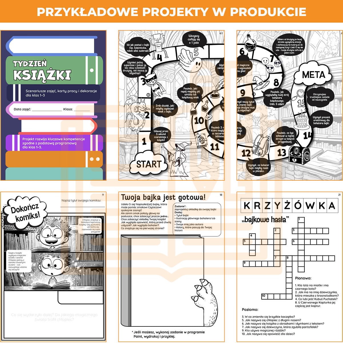 📚 „Tydzień Książki” to kompleksowy, gotowy do druku materiał PDF, aż 40 stron, który wprowadza uczniów klas 1–3 w świat literatury dziecięcej poprzez zabawę, ruch i twórczość.