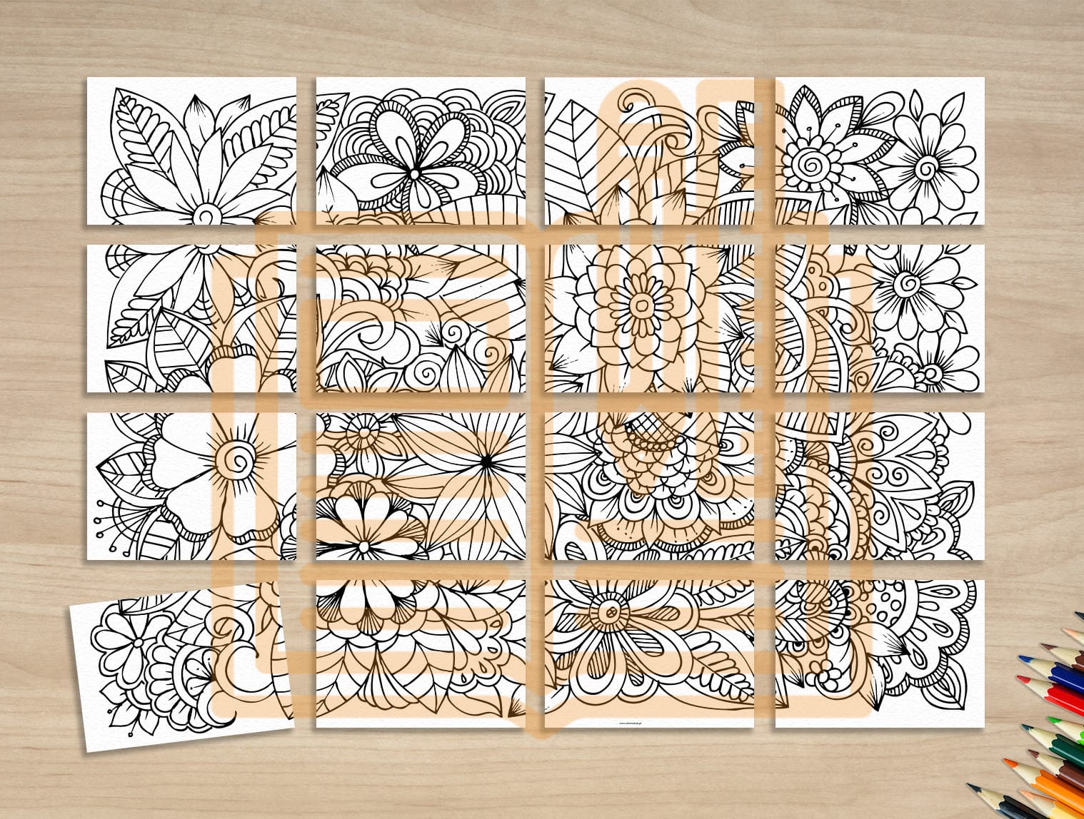 🌸 Wielka kolorowanka XXL – Wiosenna to wyjątkowy zestaw dla wszystkich miłośników kolorowania! 🎨🐦 Składa się z 4×4 kartek A4 w układzie poziomym, które po złożeniu tworzą ogromny, malowniczy obraz pełen kwiecistych wzorów.