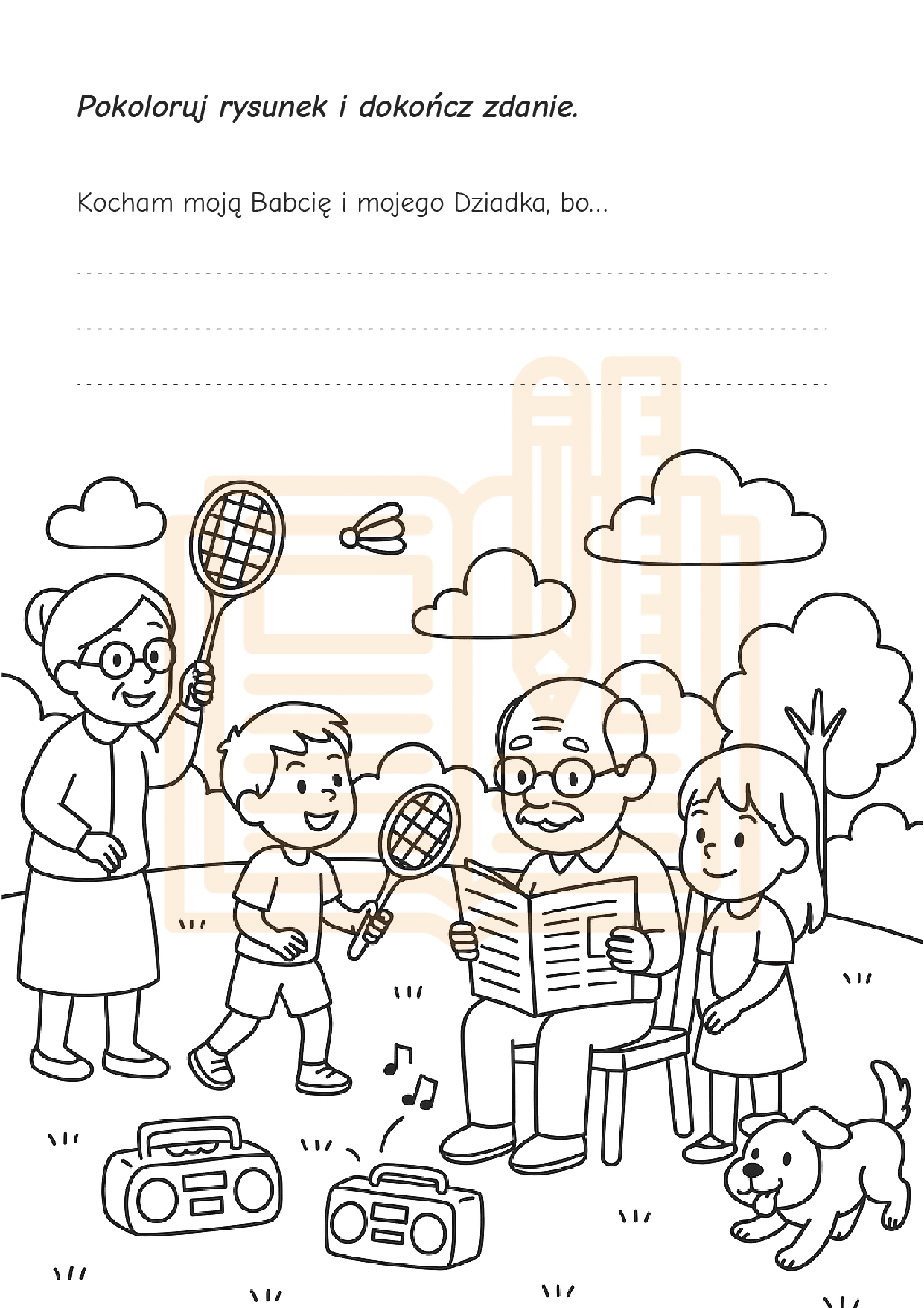 ✔ Książeczkę ucznia – o Babci i Dziadku: imiona, wspólne chwile, ulubione zajęcia, wspomnienia i rysunki