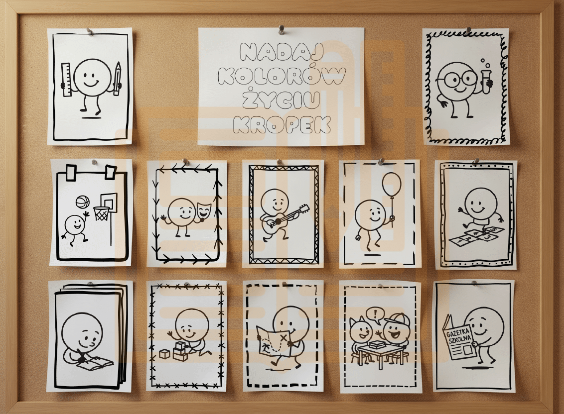 🖨️ Wystarczy wydrukować materiały, rozdać uczniom i pozwolić im zamienić klasę w barwną przestrzeń pełną kropek 🌈✨!